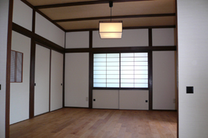 今回の工事の見せ場はこちらです!出きるだけ暖かさが感じられるように、天然素材を多く使いました。特に寝室と居間は和室だったのですが、今までの雰囲気を壊さない程度で民芸調デザインしました。すべてを壊して新しくするのではなく、一部分をまた使い新しい物を造り上げる事を考えました。 |