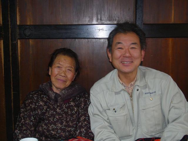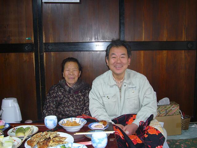 ありがとうございました工事完了後、みんなでお茶をいただきました。 「雪降りで寒い中、ご苦労さんでした。」と、息子さんご夫婦も一生懸命、とりもってくださいまして、ど暖かい部屋で、温かいお茶やおこびれをいただき、身も心もほっかほかになりました。 廻りのみんなにひやかされながら、おばあちゃんと記念写真を撮らせていただきました。 焼きたての「せんべい」とてもおいしかったです。 |