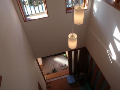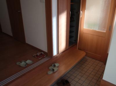 | 玄関の吹き抜けです。玄関から入るところに3枚引戸を設置、冬場の寒い時にはこれを閉め、風除室を作ります。 | 和室完成、今まで寒くて使えなかった和室もこれからは十分利用して頂けます。 | 玄関横に収納、その向こうには土足のままはいることの出来る部屋があります。 |