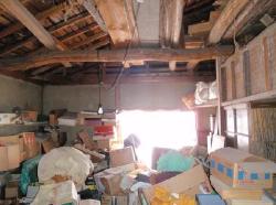 | 昔の鉄骨ベランダ、以前のリフォーム工事で入れた、一枚ガラスのランマ付サッシ。 | 2階は一部内装はされていませんでしたが、広いスペースが物置状態。 以前はここでカイコを飼っていたのでしょう。 |