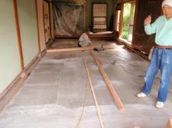 1階の和室の床も張替と言うことで、剥いでみたら一面の池!私も驚きましたが、ご両親も相当驚いていました。家の裏には湧き水が出ている為、それで・・・急遽、コンクリートを打つことに。 |