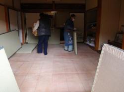 いよいよ最終段階、間口の長いベランダ工事です。 | 荒床を張って物置状態になっていた和室。他の部屋が完成して荷物が出され、いよいよ畳を敷き込みます。 |