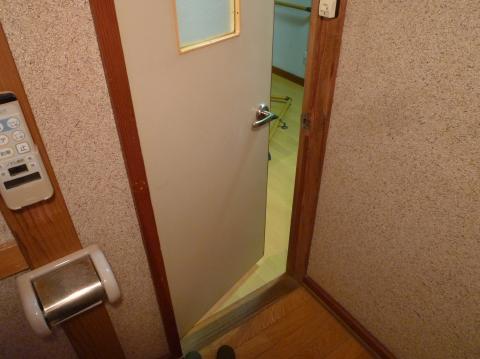 出入り口は開き戸、おまけに段差がありつまずきやすく、大変危険です。 |