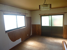 | 25年ほど前に建てられた離れですが、納戸の様な使われ方でした。母屋は立派な建物でそちらはご子息夫婦が生活をおしています。 | 広く立派なお家ではあるのですが、ところどころ劣化などが見受けられます。 | 2階の和室です。寝るだけは可能ですがお話を聞くと、断熱材など入っていないので冬場は寒くて居れないそうです。 |