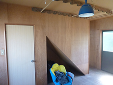 | 完成です。新しい照明を付け、庇も新たに造りました。しっかりと板金施工をしてあります。塗装もきれいに塗れています。 | 自然素材で身体に良い環境の中、お子様の成長を見守ることができます。 |
