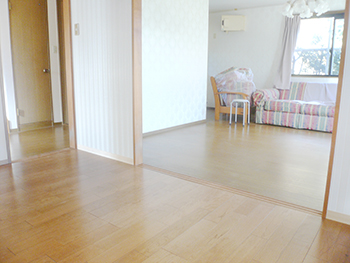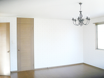 | 陽の光がよく入る広々としていて気持ちのよい空間になりました。 | クロスを貼り替え、フローリングも替え、明るさを取り戻しました。照明もオシャレなものに替えました。 |
