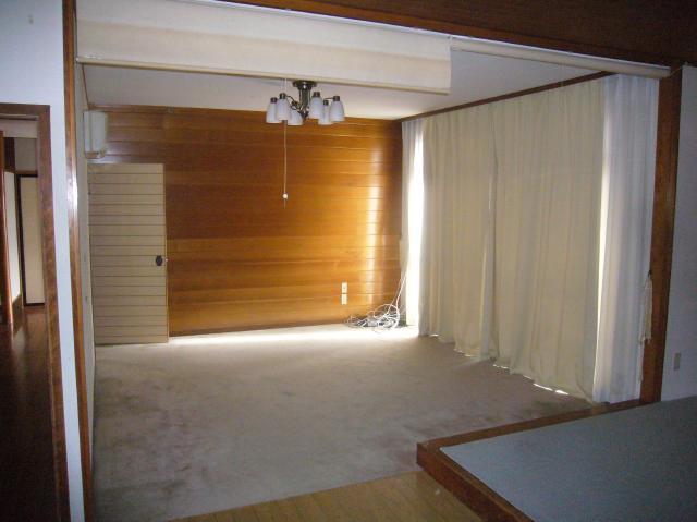 | 外装ですが瓦のスガモレが原因で、軒天が劣化しています。屋根に上ると所々瓦が割れていたり、ズレたりしています。 | 間取りは贅沢な配置になっています。建てられた当時は、贅沢な空間のリビングダイニングになっています。 | 広い空間になっていますが、中間仕切りが無いのとサッシガ広く取られているので耐震補強が必要になります。 |