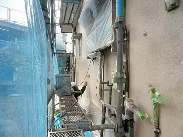 | 外部も足場を組んで、外装のリフォームです。 | 外壁も全面塗装をします。 | 屋根も塗り替えます。 |