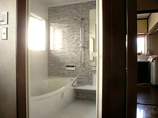 | 施工前の画像と比べてください。外壁塗装が完了しました。 | タイルの浴室がユニットバスになりました。 | 廊下のセンイ壁が明るいビニールクロスになりました。 |