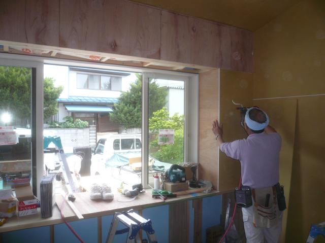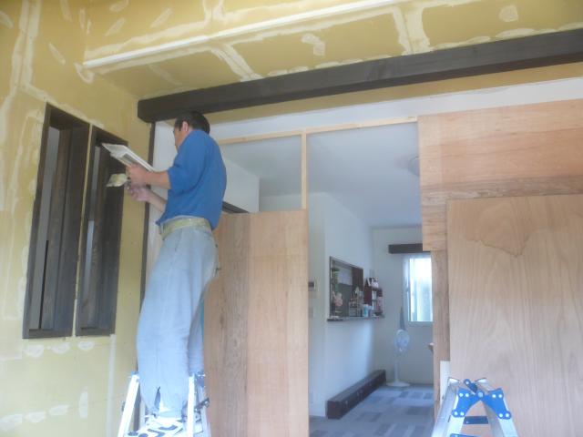 下地をした壁に、ボードやベニヤを張って仕上げて行きます。 |