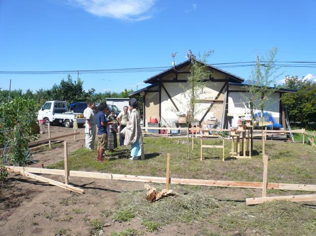 とにかく広い敷地なので、日当たりがよく気持ちがいいです。 | こけら落としが無事終わって、ウッドデッキが欲しいと言うことになり、早速工事です。 |