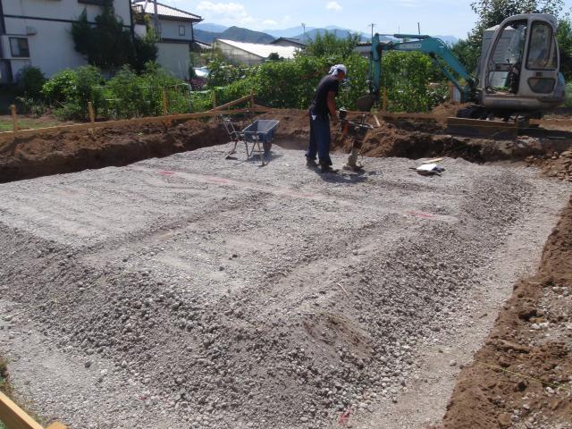 ベタ基礎 砕石終了です。 今は、布基礎よりも、こちらの方が多いですね。 |