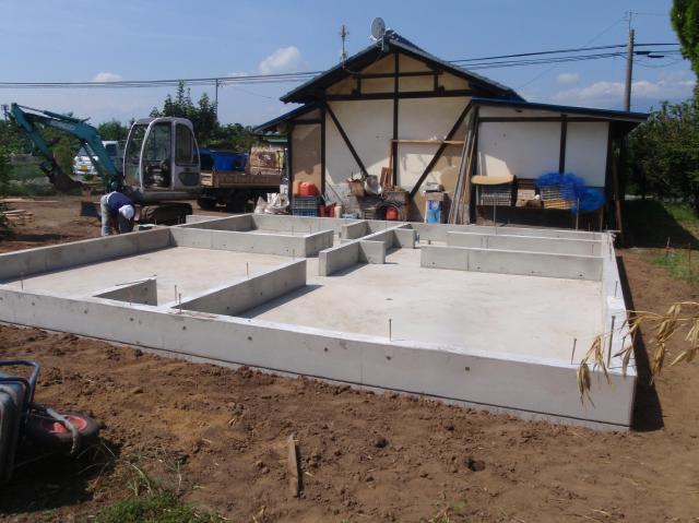 | 型枠を外して、基礎の完成です。 | 建前の前日、土台を敷いて準備をします。 | 『上棟・建前・棟上げ』 いろいろな言い方はありますが、みな同じです。 |