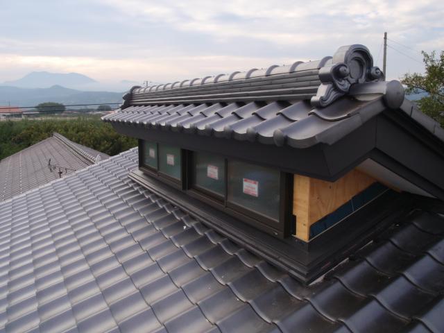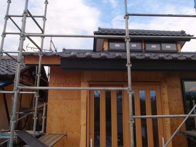 | 玄関サッシも取り付けました。 | 明かり取りの窓がアクセントになります。 瓦も終了です。 | 外壁のモルタル塗り作業開始です。 |