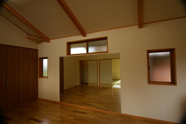 | お稽古室から和室側を見た状況です。 明かり取りの窓の所には、少しですがロフトの空間があります。 |
