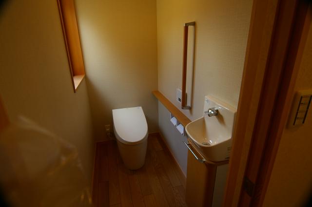 トイレもスッキリとしたデザインで、手洗いも付けました。 |