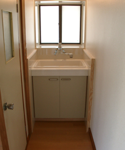 | 立派な玄関の完成! | 廊下も広々し、大満足していただきました。 | 洗面台は隙間もないので水漏れの心配ゼロ! |