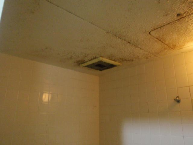 | 床の汚れも、染みこんでしまいもう掃除で落とすことが出来ません。 | 天井も至る所でサビが浮いています。 | 北側の部屋の壁は、結露と湿気とカビで、クロスは剥げ、ボードまでカビだらけです! |
