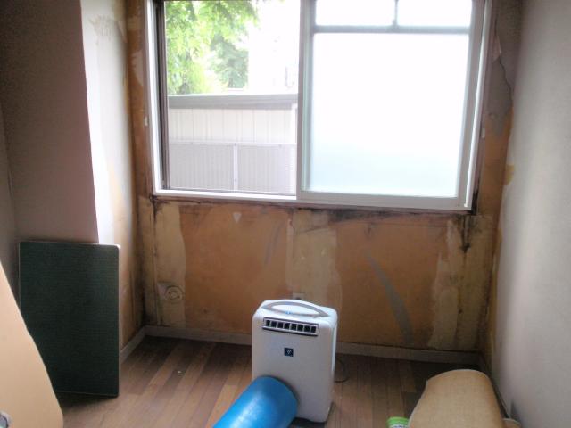 | とりあえずは、ユニットバスの入替から | マンションに良くあるのですが、無窓のお風呂場です。カビ対策、とにかく換気扇で乾燥を心がけましょう。 | 北面の部屋の壁は、外壁に面する壁ボードは全て撤去しす。 |