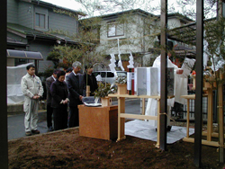 | 施工前の外観風景 | 地鎮祭風景 | 土台からしっかりつくります! |