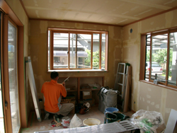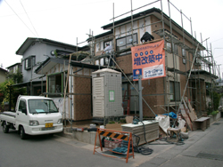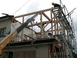 | 足場をつくっています。 | 2階部分の増築作業中。 | 仕上がりが近づくにつれ、S様もそわそわされていました。 |