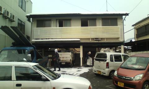| 解体工事はほぼ終了です。 | 今回は雪に悩まされました。 | 後は足場を撤去して、終了です。 |
