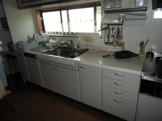 | だいぶ前に弊社で、キッチンの取替えリフォームをさせていただいたお客様です。食洗機が付いているのですがまったく使っていないので必要がない。また他にレンジフードやシンクなどにも使いづらいところがあって取替えリフォームしたいとご相談がありました。 給湯機も水漏れが発生し始めていて一緒に取り替えリフォームをしました。 |