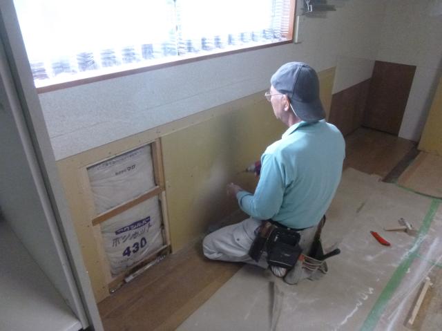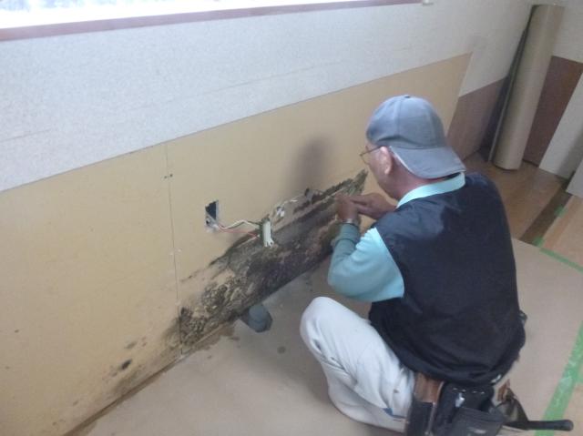 | 綺麗に撤去できました。 | 大工さんにかびている石膏ボードと断熱材の部分的入れ替えをしてもらいます。 | 入れ替える部分を撤去しました。 |