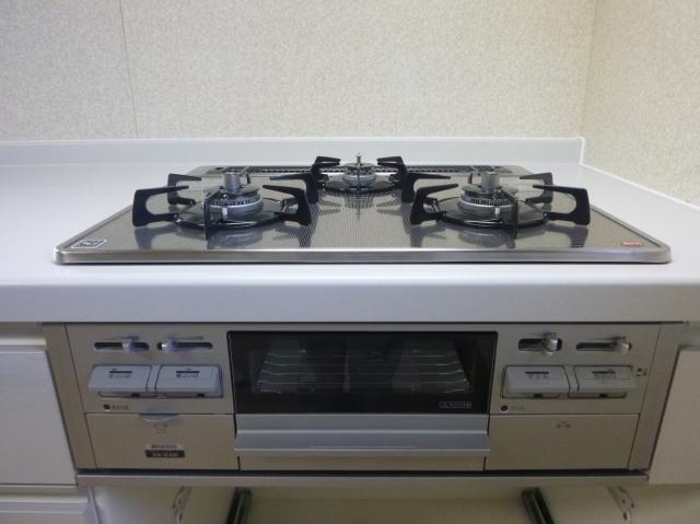 | 新しいキッチンの設置が完了しました。お客様にも喜んでいただきました。 | 新しいビルトインガスコンロです。 | 換気扇です。スマートなゼロフィルターフードが特徴的です。 |