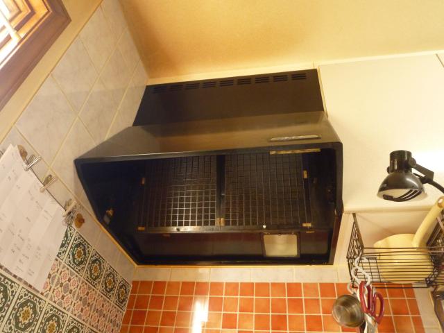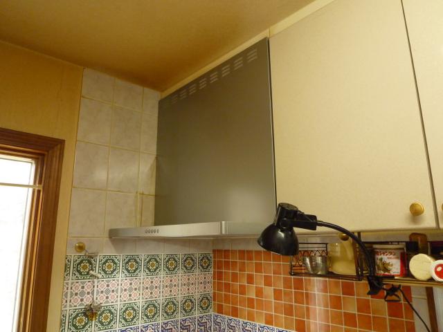 | とても素敵なレンジフードが付きました。 | 整流板付きなので掃除がとてもしやすいです。 | 既存の吊戸棚とマッチして違和感なくおさまりました。 |