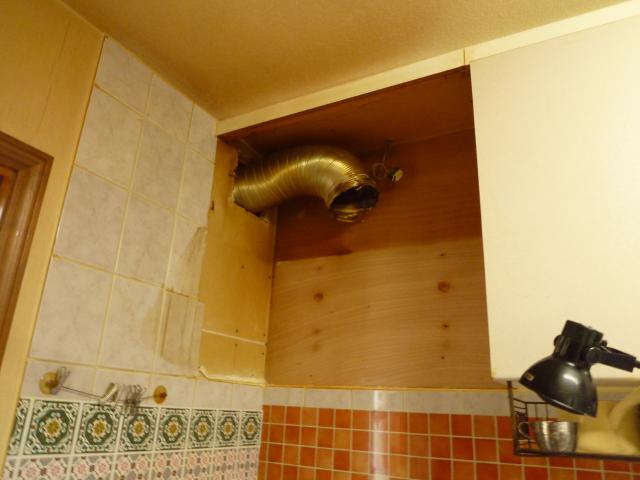 | ブーツ型のレンジフードです。 | まったく動かないようです。 | シロッコファンなので内部だけのリフォームで済みそうです。 |