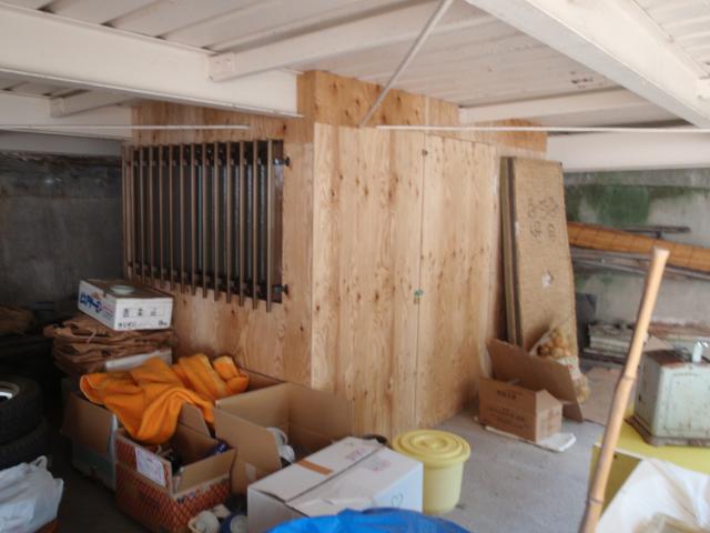 | 神主さんを呼んで、お祓いです。 | まずはおじいちゃんの漬け物小屋を作って漬け物を移動させる事から始めます。 | 漬け物小屋完成。これでキッチンの半分以上が片付きました。 |