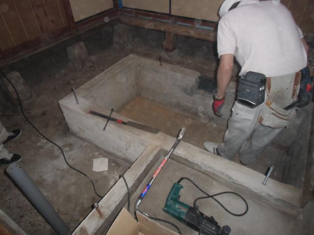 | 脱衣室と浴室の境はどうしても腐食しやすいので直すことが多いです。ユニットバスにしてしまえば一番いいのですが・・・。腐食した部分をできるだけ入れ替えてしっかり直しました。その後キッチンの床も弱いところがあるとのことで、床の組替えと流し台の入れ替えをしました。 |