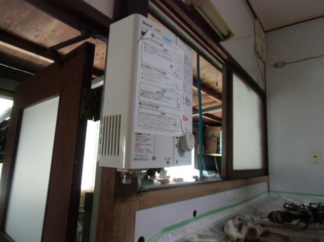 | 新しい瞬間湯沸かし器です。 | ビルトインコンロの設置も完了しました。 | これで新しいキッチンに生まれ変わりました。 |
