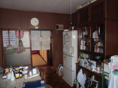 | 恥ずかしいのよ、見ないで!と言うくらい荷物がいっぱいで、どこから手を付けていいのか・・・ | キッチンから中廊下には引違のガラス戸 ガラガラと音が出る懐かしい引戸です。 |