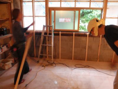 | 水回りリフォーム工事のクライマックス!いよいよ奥様が待ちに待った最終段階です。 とても広いダイニングキッチン。片付ければここで食事を取るスペースは十分あります。 北側の窓を半分にして、寒さが入らないようにします。部屋のクロスは明るい色を選べば全然暗くなりません。 床から天井まで全部こわして、断熱材をきっちり入れると、とても暖かです。冬の寒い朝でも、居たくないような寒さを感じません。 ちょこっと暖房を入れると、直ぐに暖かくなること間違い無しです。 |