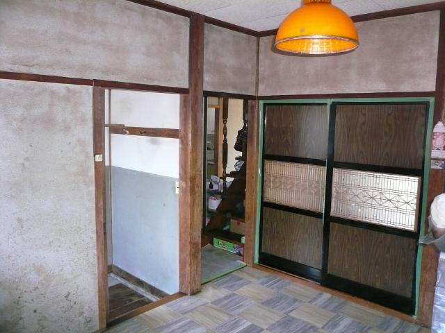 | 壁付きのプロペラ換気扇でフードも無く、長年使用してきたせいもあり天井と壁に油がしみ込みキッチン全体が薄暗く、暗い部屋になっていました。キッチン本体も老朽化して、収納も使いずらい形でした。 居間からは引き違い戸になっており、夏場は襖を外して冬の暖房を使う季節に襖を入れるようしてあったので、その都度手間がかかるのでその悩みも解消したいとの事でした。 |
