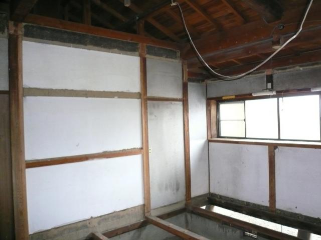 | 長年使用してきた食器棚とキッチンを撤去していきます。 | いよいよ解体工事です。天井から壊し始め、床を撤去していきます。 | 壁は土壁ですので利用して、その上に新しく下地をして壁を張ります。 |