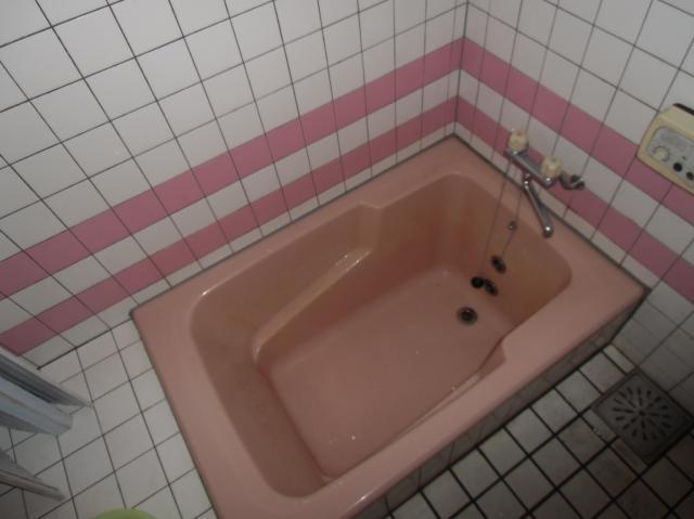 | きれいにタイルを張った施工前の浴室です。 | 当時の浴槽は小さいですね。 | 最近のものと比べると、やはり使いづらそうです。 |