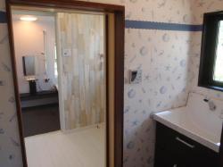 浴室の手前は、脱衣室がありゆったりと着替えが出来ます。さらにその手前に洗面所が。誰かが入浴中も、気兼ねなく洗面所が使えます。 |