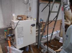 新しい給湯機も設置。配管も完了、太陽熱の配管も施工します。 |