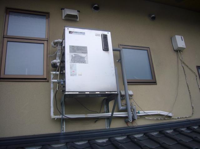 | 今まで、3万㌔の追い焚き付石油ふろ給湯器をご使用でした。 2階専用のふろ給湯器でしたが、1階にもふろ給湯器があり、お風呂は一階の方を使うことが多いので、2階は給湯専用機でもいいかなと思っていたようです。 |
