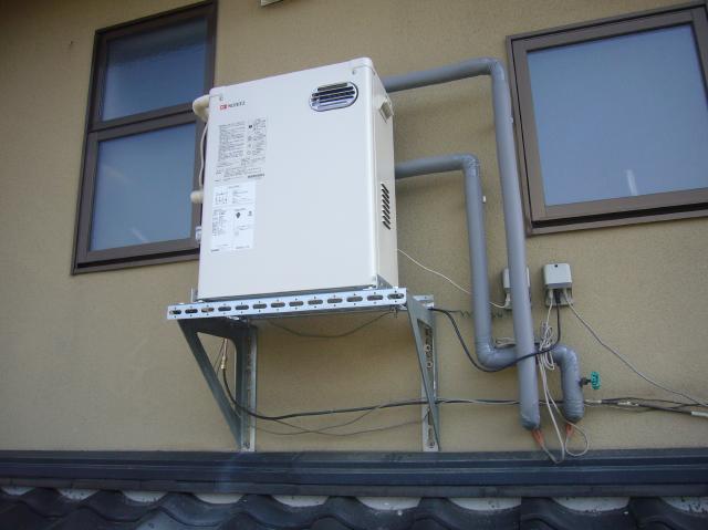 | 新しい給湯器取り付け完了です。 | 今までの物より、大分小さくなりましたね。 | 給湯器周囲がスッキリしました。 |