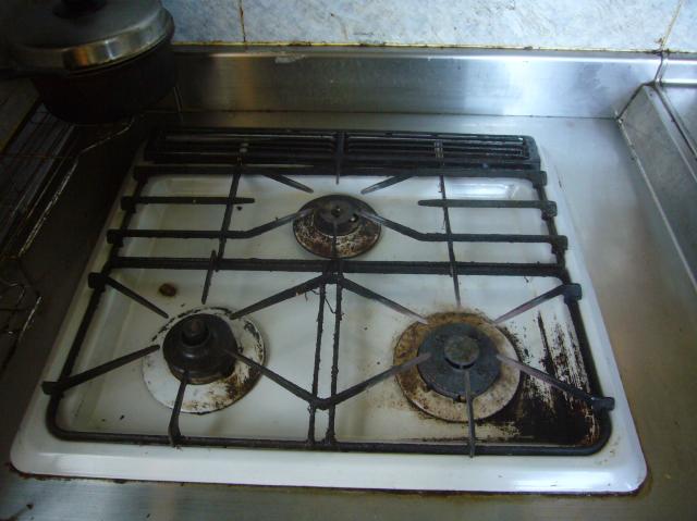 | 壁掛式のガス給湯器です。太陽熱温水器と併用しています。 | 夏場のお湯は、は太陽熱温水器だけでも十分対応できます。 | ビルトインガスコンロも長く使っていると、故障してきます。 |