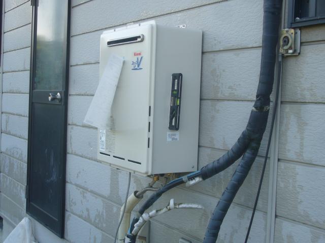 | 今回、リンナイの20号オートタイプ壁掛式のガスふろ給湯器を取付けました。 | 傷んでいた周辺の保温材も巻きなおして、きれいに完了です。 | リンナイのビルトインガスコンロです。フラットなホーローのトッププレートで使いやすくなっています。 |
