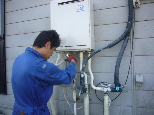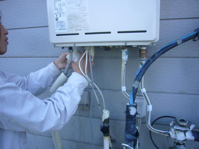 | 給湯器本体周辺の配管・配線の接続を復旧します。 | 給水管・給湯管・循環パイプの保温をします。周辺の傷んでいるところも一緒に直します。 | 都市ガスの接続を新しい管でやり替えます。 |