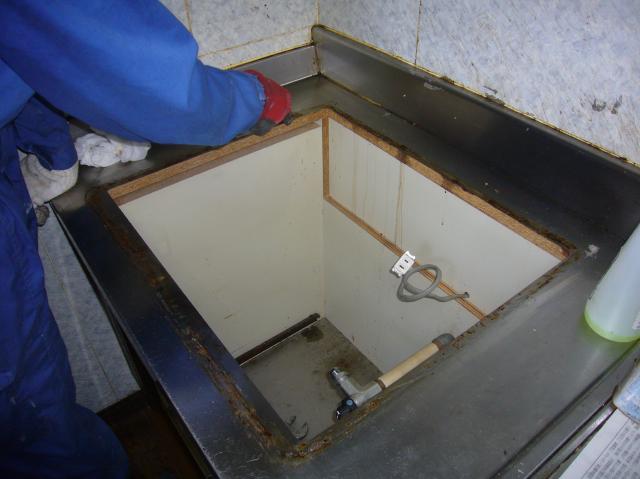 | 既存のビルトインガスコンロを外します。 | コンロ台の油汚れをきれいにします。 | 新しいガスコンロを設置し、ガス管を接続します。 |