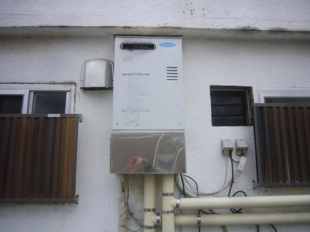 | 壁掛形の4万㌔、石油ふろ給湯器の取替えが完了しました。 | ステンレスカバーも元に戻しました。 | 接続配管は大きく変わることなく納めることができました。 |