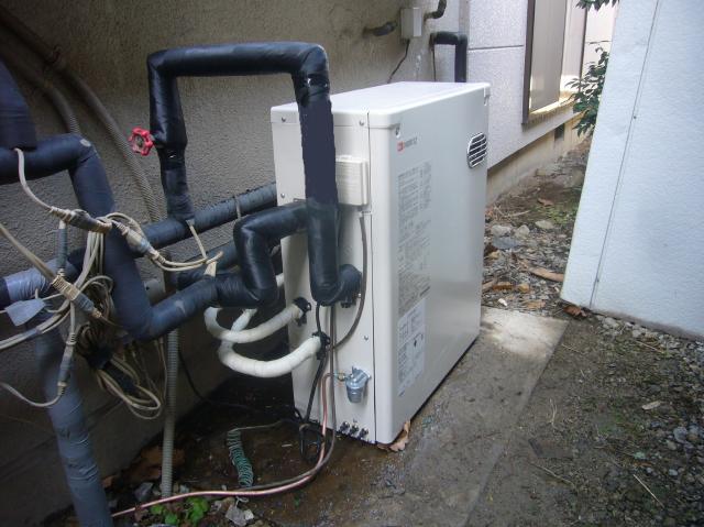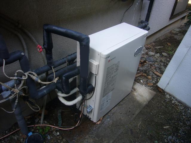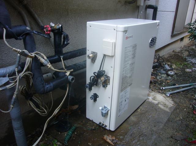 | セミ貯湯型の石油給湯器です。 | 給湯器にカバーをしてありました。 | ノーリツのOTX(セミ貯湯)です。 |