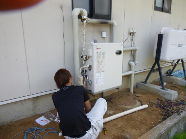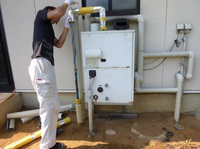 石油ふろ給湯器取替えリフォーム施工中